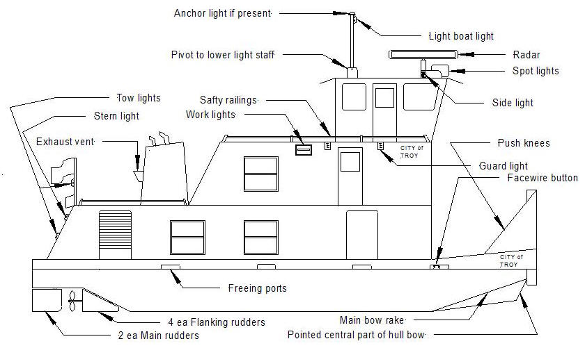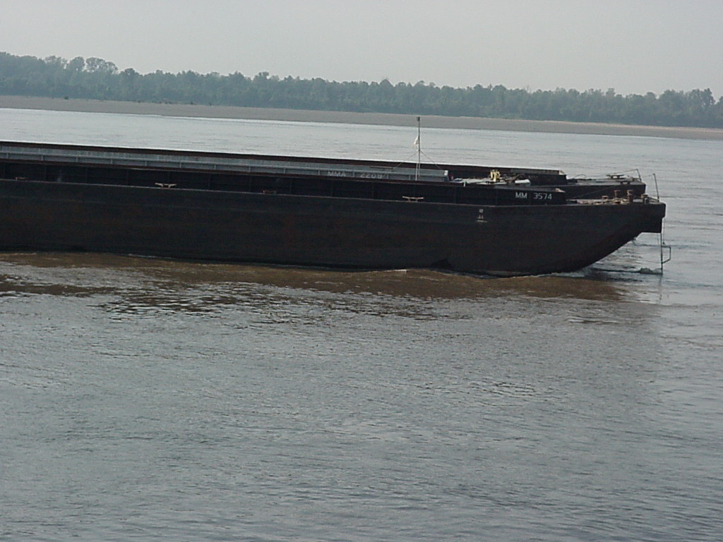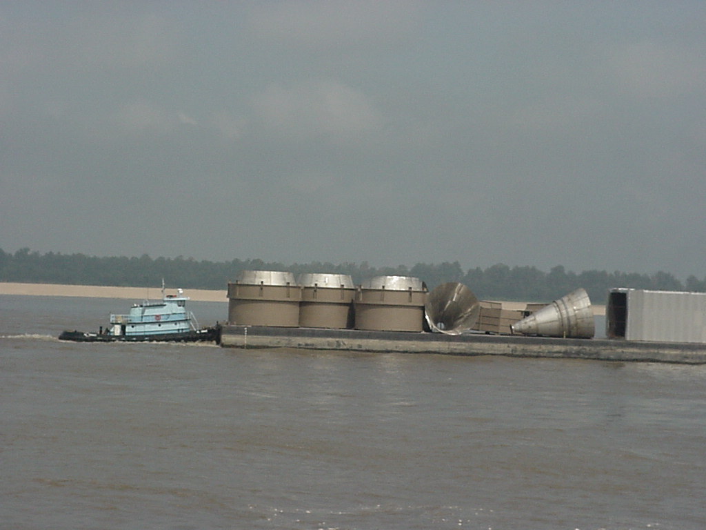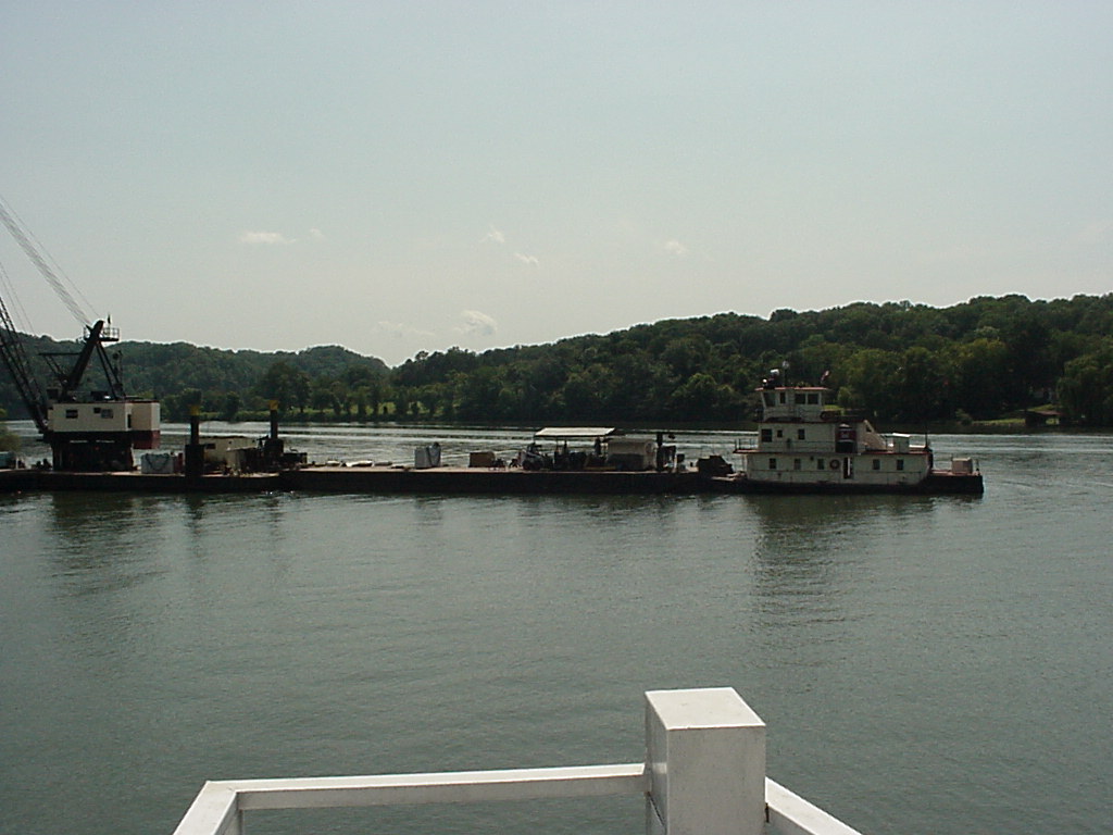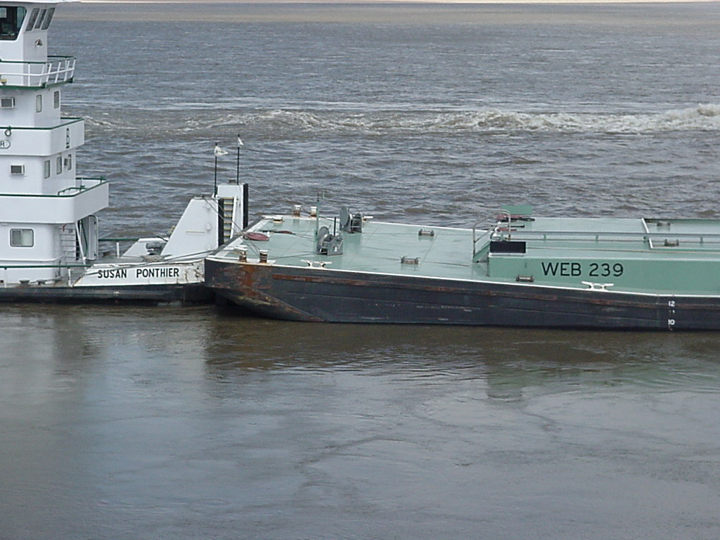 function. Here are two common barges with depth sounder poles on the front of the tow. The